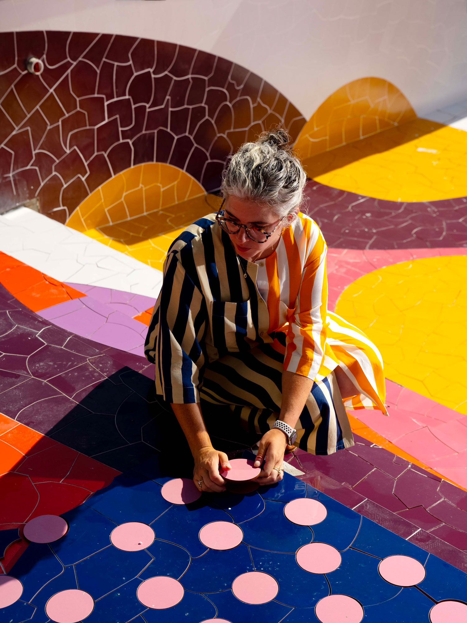 Painting a pool mural was in her little book of dream projects, until a homeowner in California gave her the chance to finally do it. Since then, Proba has painted a handful of pools, each just as bold and awe-inspiring as the last. This year, she brought her practice to South Florida and turned it up a notch, realizing her first tiled pool: a one-of-a-kind mosaic for the Fernandez family, created in collaboration with Guadalajara-based ceramic studio Cerámica Suro. Inspired by the colors and textures of local coral reefs, the installation is composed of thousands of handmade tiles designed to shimmer and shift under the water and sun.